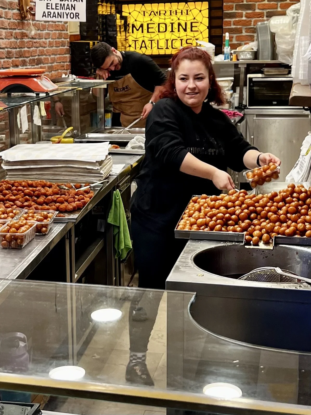 That night, one of the food items Pilar introduced us to was lokma, which are fried dough balls with the same syrup that baklava has. So when you bite into the warm, soft fluffy bread you get both a little bit of warm grease mixed in with the incredibly sweet syrup. My lord. I could have passed out. We got a box to go so we could chow down on them while catching up on Ted Lasso. Getting back to the European side, we made it just in time to see an absolutely incredible sunset over the bridge.