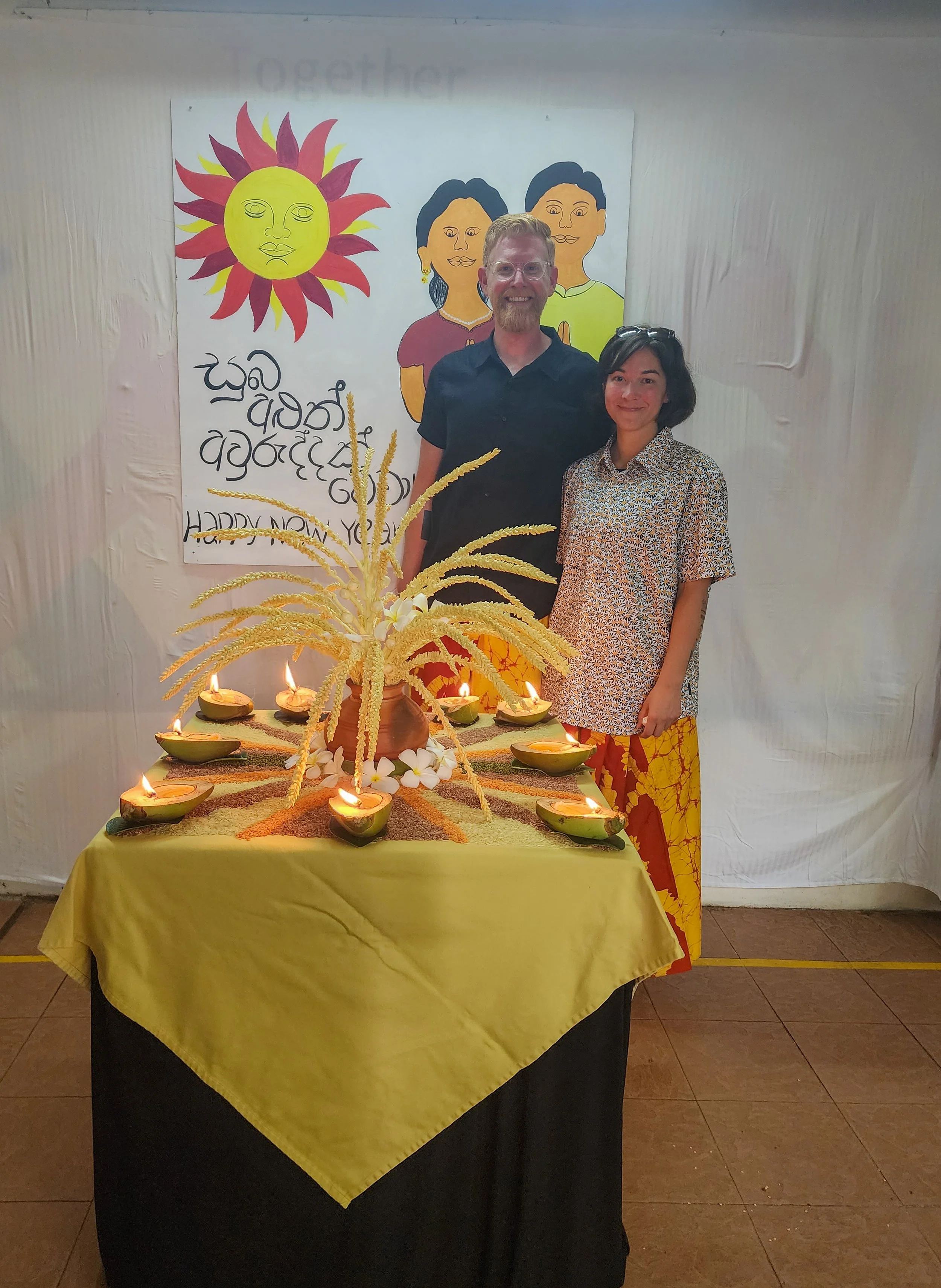 At some point on day 2, Erik had been chatting with a new friend, Lahiru, and he got us invited to the next days Sinhalese New Year! We had been hearing about it when we were in Sri Lanka but were so surprised to hear that they planned to celebrate on the island. There are 38 Sri Lankan people working on the island – including the general manager, so it seems that they go all out each year.