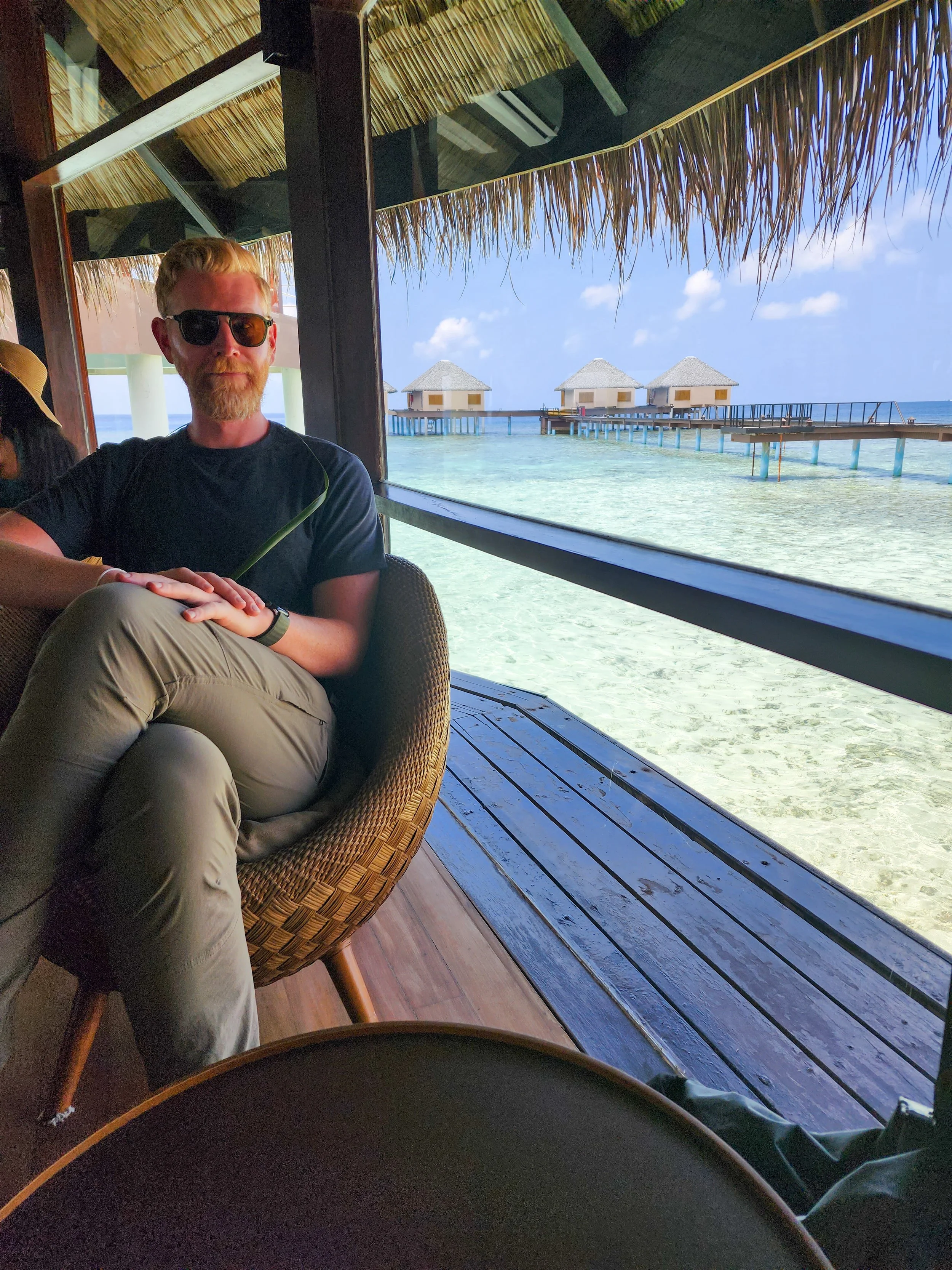 (Erik) Getting on the boat to Vadoo at 10:30 meant we were able to have nearly the whole day on the private island. It was surreal. I never thought I'd go to Maldives but when Leeah strongly suggested it, I wasn't about to say no. I typically would not find myself spending lots of money to go lay on a beach, and actually, we didn't. We spent lots of money, yes, it's not cheap to go to these resorts and I was skeptical, but my mind was changed pretty quickly. The room was spectacular, our butler Anshul, was excellent and always somehow knew where to find us if needed. We came with no plans and before our orientation was over, we had dinner reservations at two of the restaurants on the island and a list of activities we wanted to do. My main focus for day one was to get in the water and see some beautiful fish. That we did.